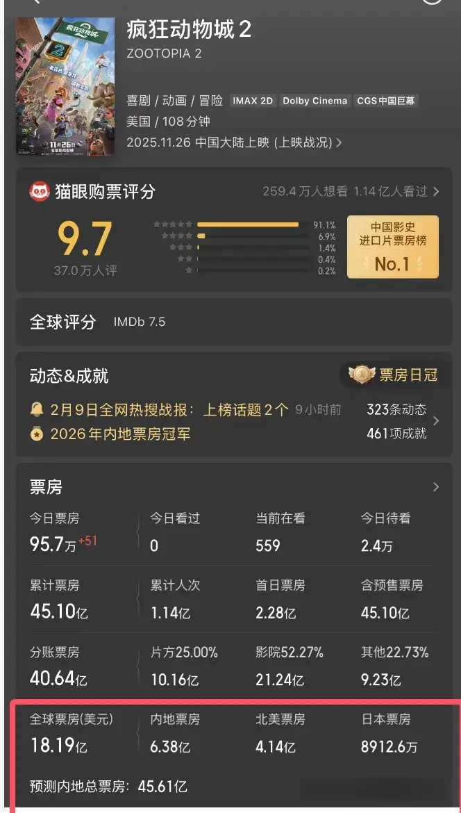 当然了,这今天的王者电影,一定还要花落《疯狂动物城2》了。