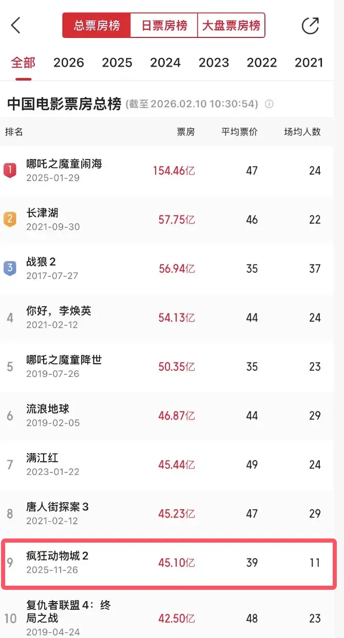 而《疯狂动物城2》才两个多月,就拿下了120多亿,后劲还这么厉害的,《哪吒2》是真的拦不住啊。